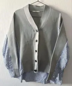 ストライプカーディガン軽量ニットBACK 前ボタン ドッキング