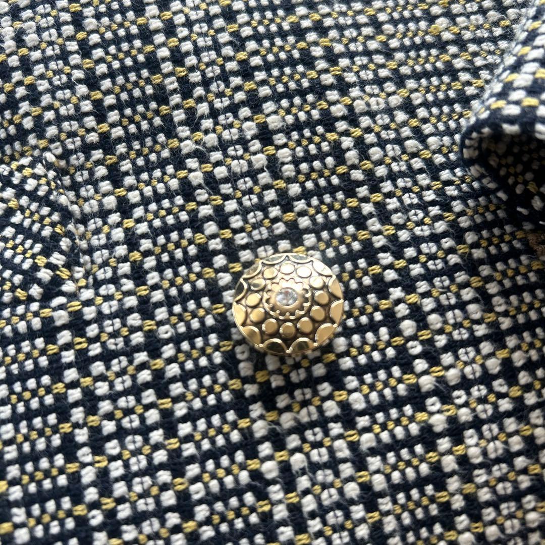 ダブルブレストブレザー 黒と白と辛子色のチェック柄