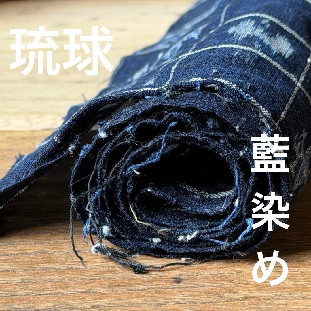 21 藍染め 絣 琉球? 木綿 古布 リメイク パッチワーク 時代布