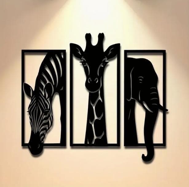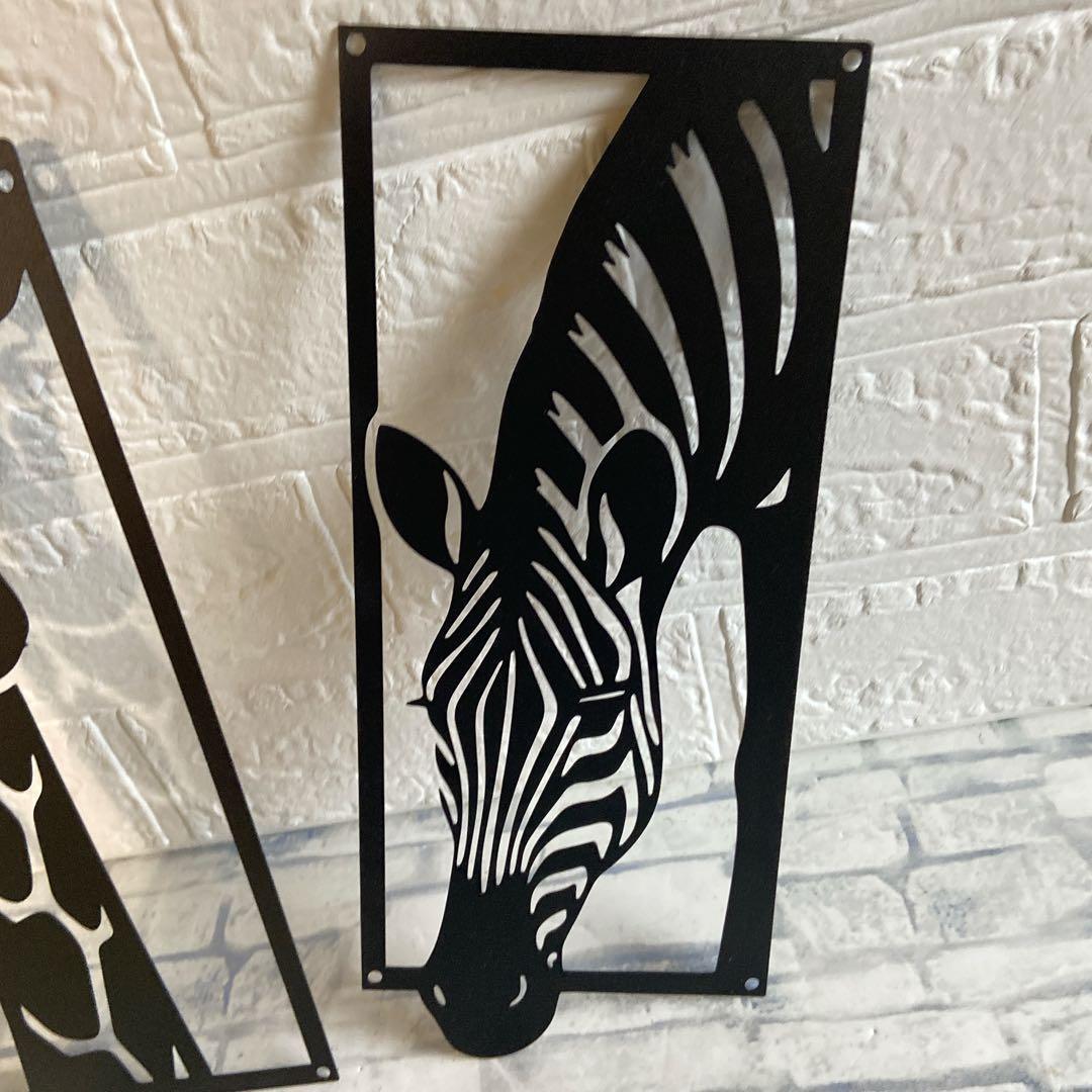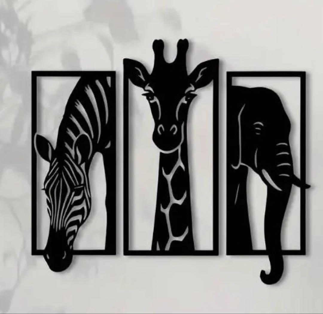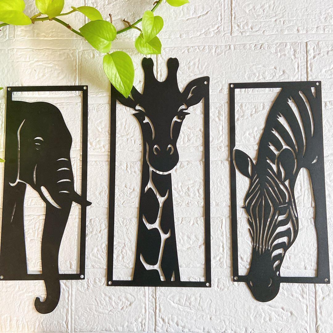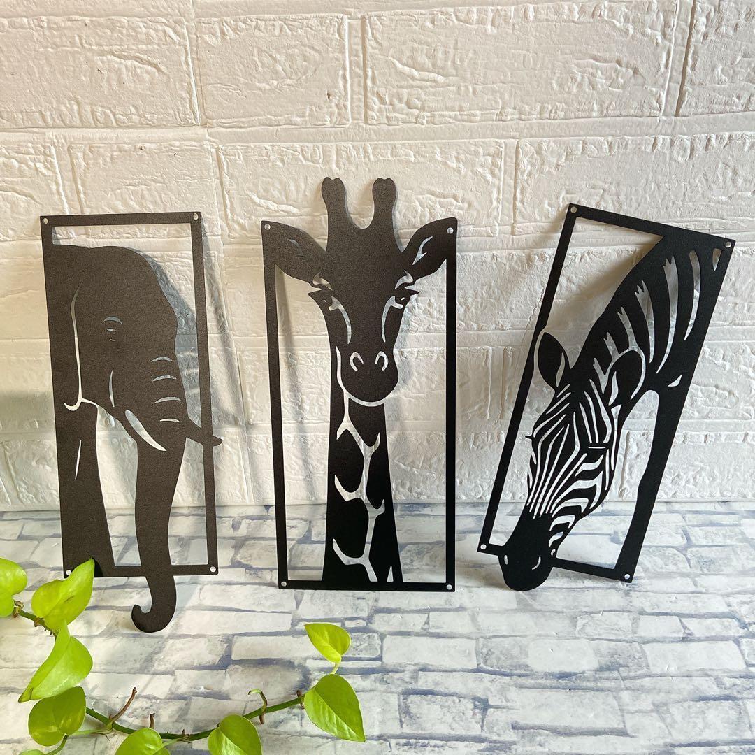 【SAIL】アイアン 3点セット ゼブラ キリン 象 黒 ウオールアート202