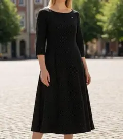 美品 シビラ ワンピース L相当 黒ドット柄 7分袖 Aライン 後ろファスナー
