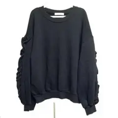 黒 袖フリルトレーナー
