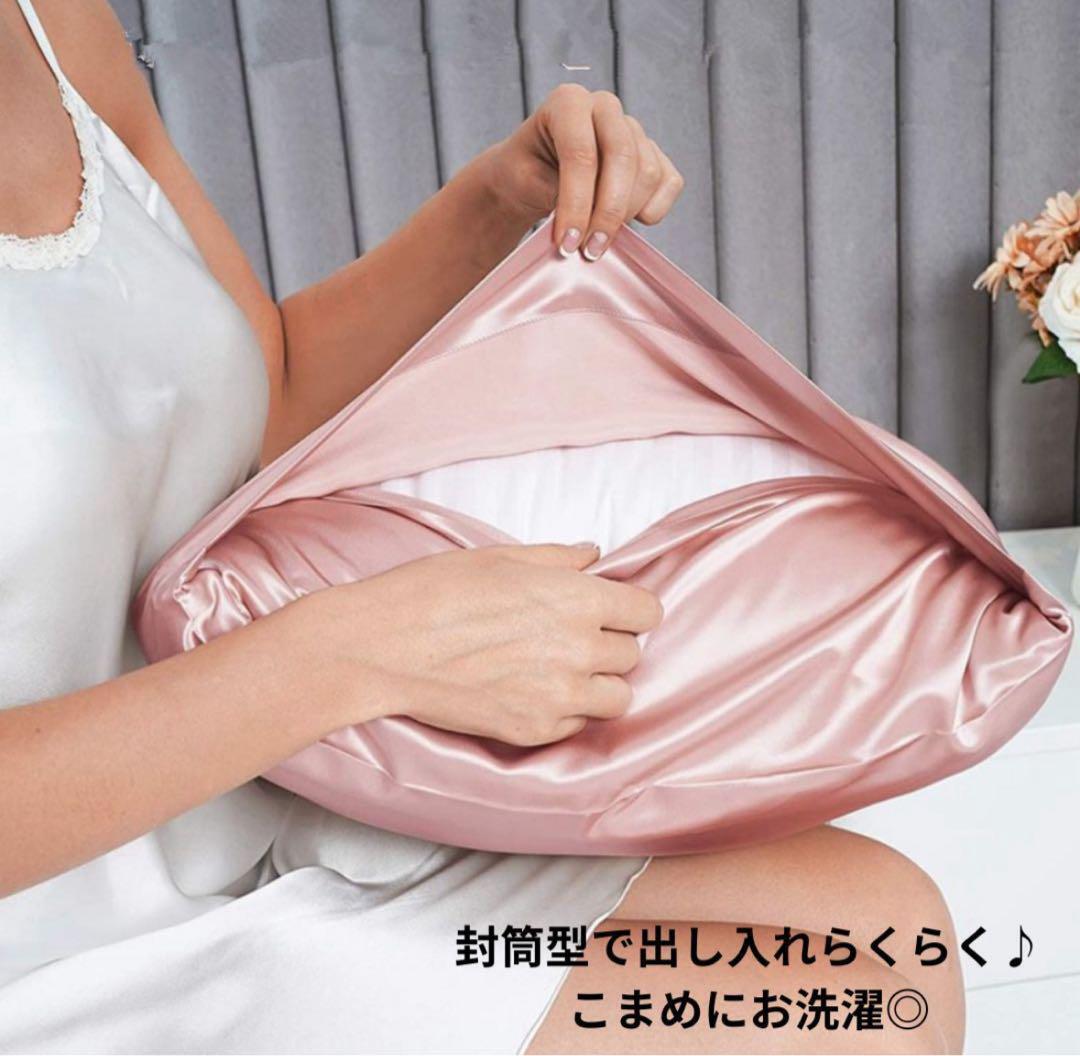 【ネイビー2枚】枕カバー シルク 摩擦軽減 美髪 ピローケース ダメージ防止 青