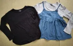 ロンT 130cmキッズ 男の子 秋冬 長袖 ボーダー重ね着風 2枚セット