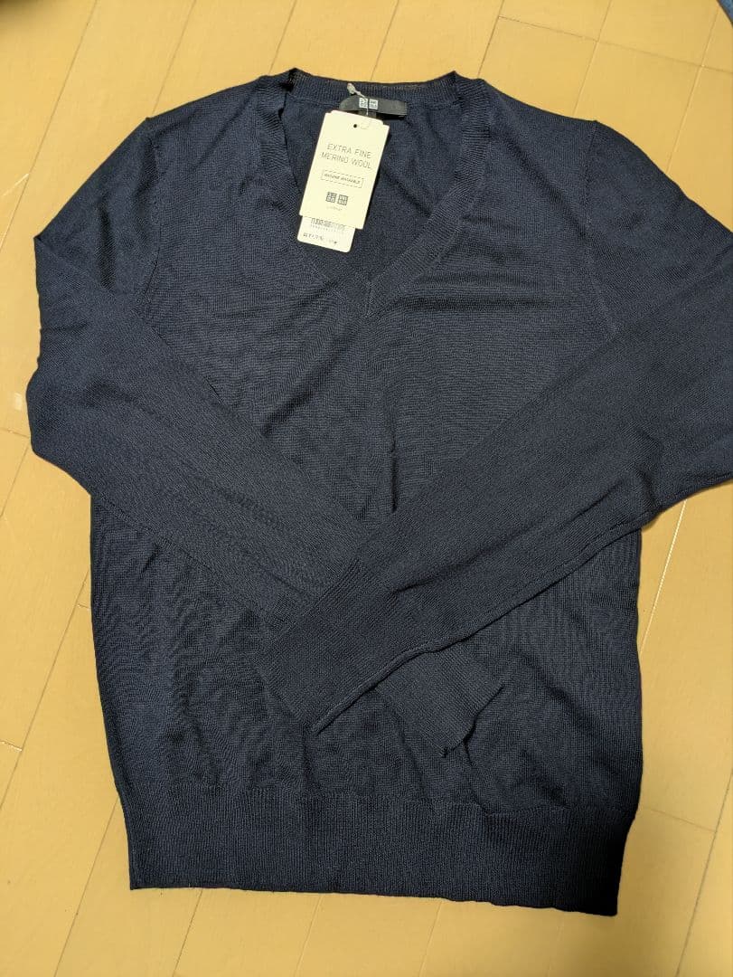 エクストラファインメリノウール Vネックセーター ネイビー