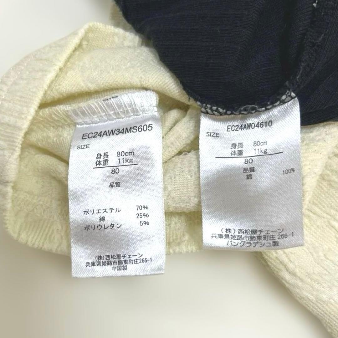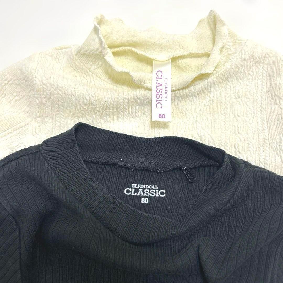 【2点セット】ハイネック 長袖 リブTシャツホワイト ブラック 80