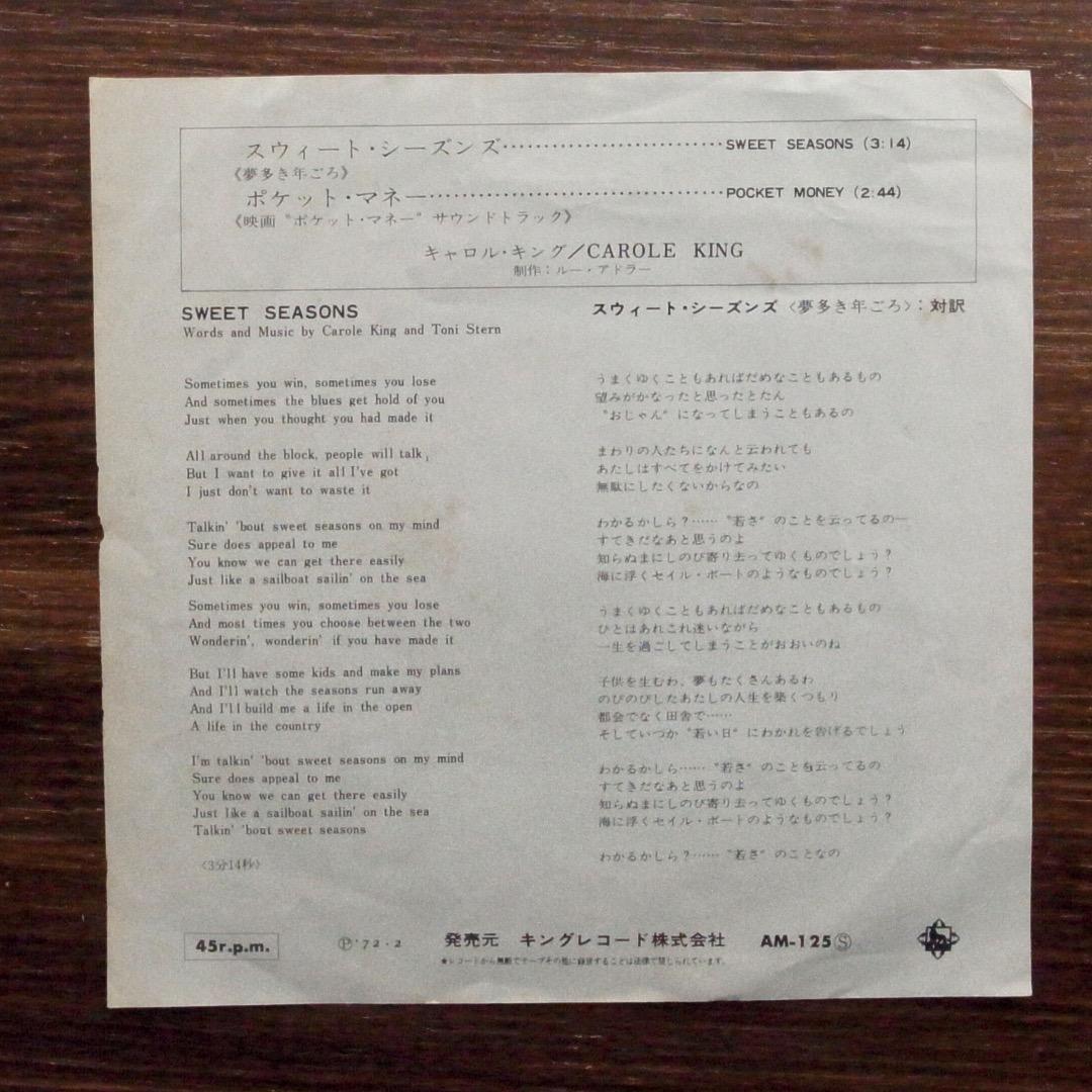 キャロル・キング / スウィート・シーズンズ 《夢多き年ごろ》 EPレコード