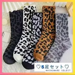 【新作】ソックス 5足 セット レオパード トレンド 韓国 クルー フリーサイズ