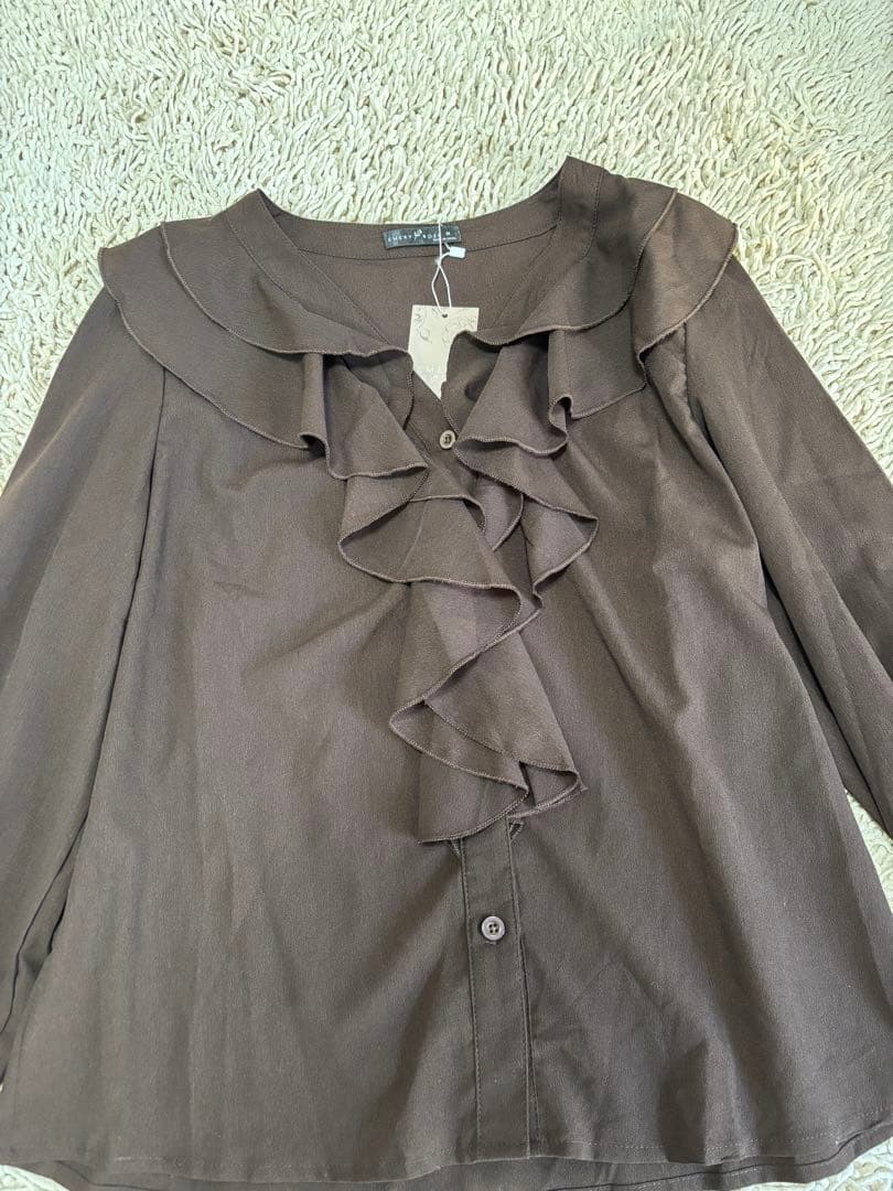 フリル付き ブラウン長袖シャツ