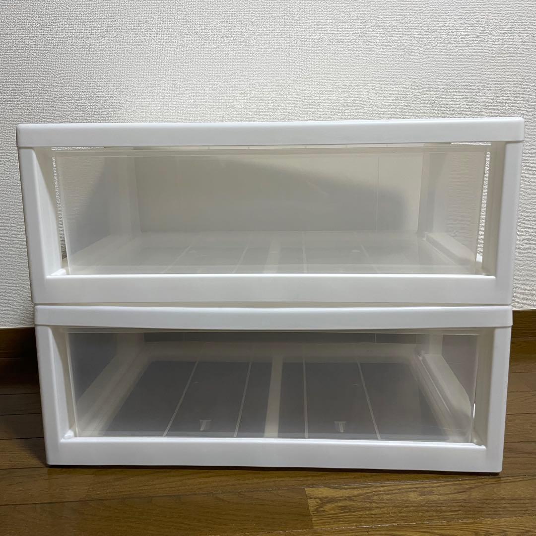 【美品】クローゼット収納 2段セット 衣装ケース 押し入れ収納 半透明 ホワイト