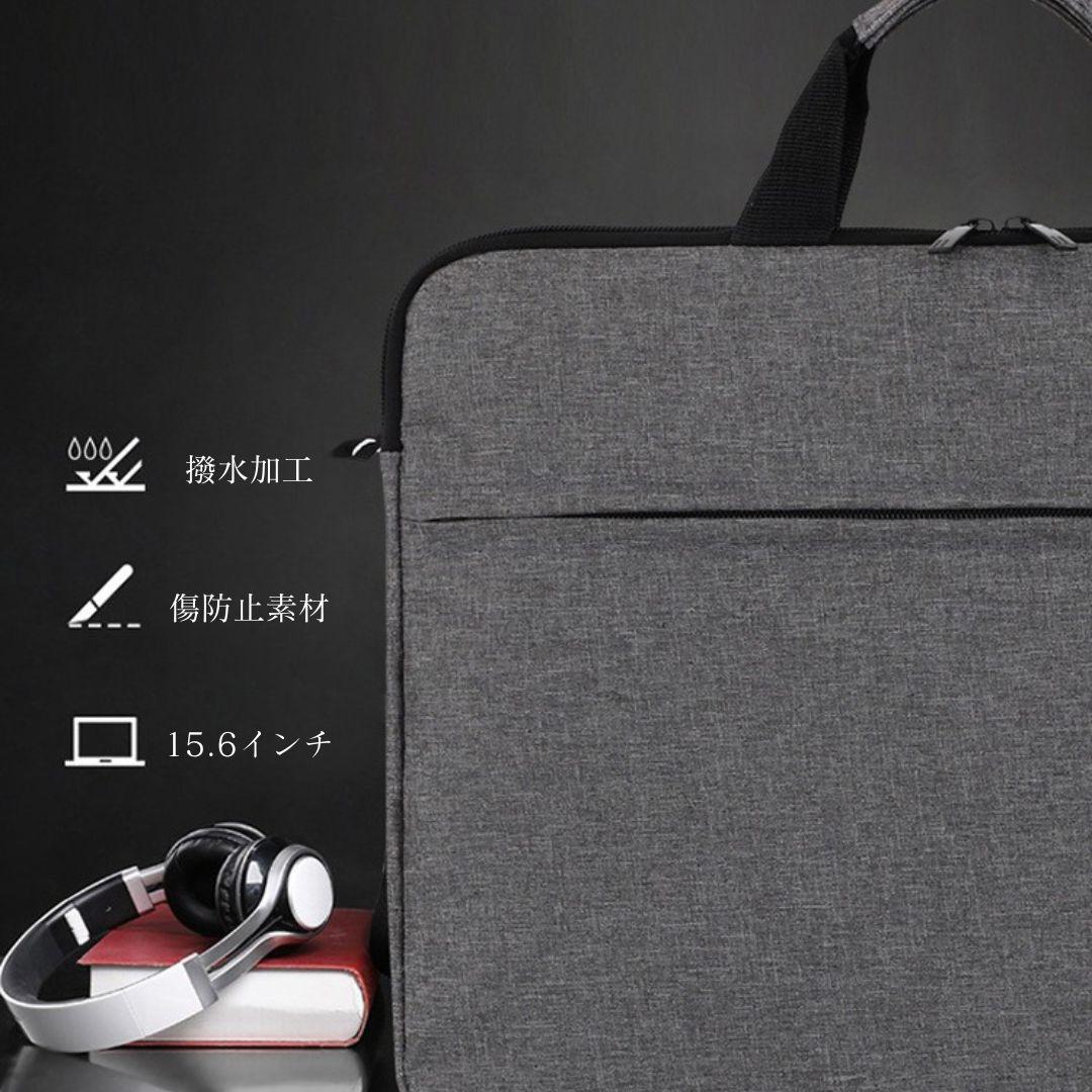 15.6インチ対応 PCバッグ グレー 撥水 薄型 軽量 肩掛け可 ショルダー