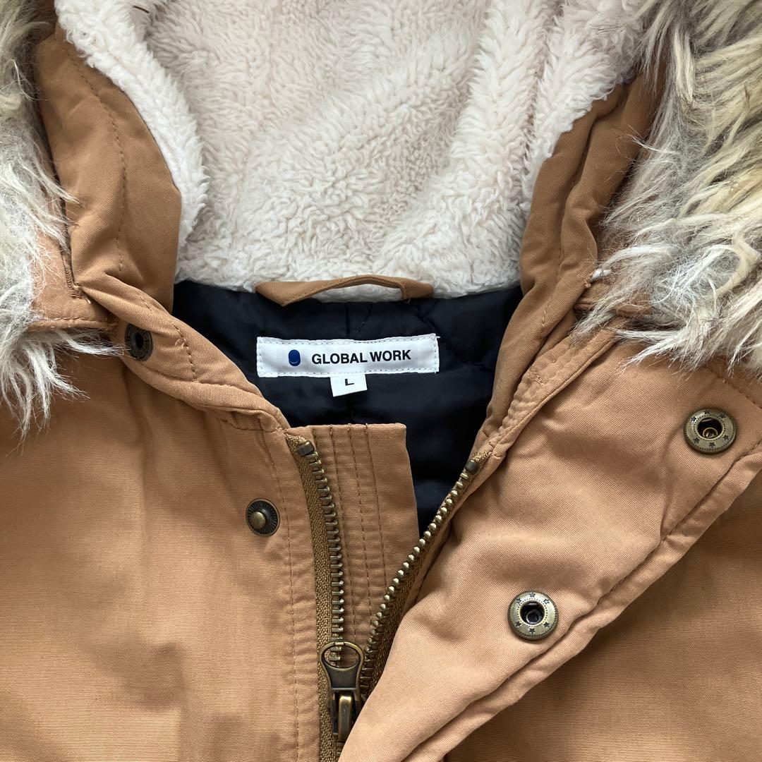 美品★GLOBALWORKベージュ ファー付きモッズコート【sizeL】