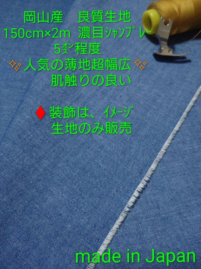 10 岡山産 良質生地 150cm×2m 濃目シャンブレー 5㌉程度