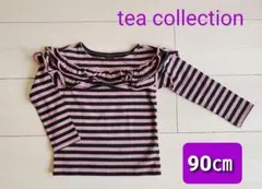 90cm tea collection ボーダー フリル 長袖Tシャツ