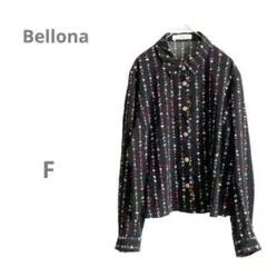 【Bellona】シフォン長袖シャツ 花柄シャツ 総柄 日本製 黒 フリーサイズ