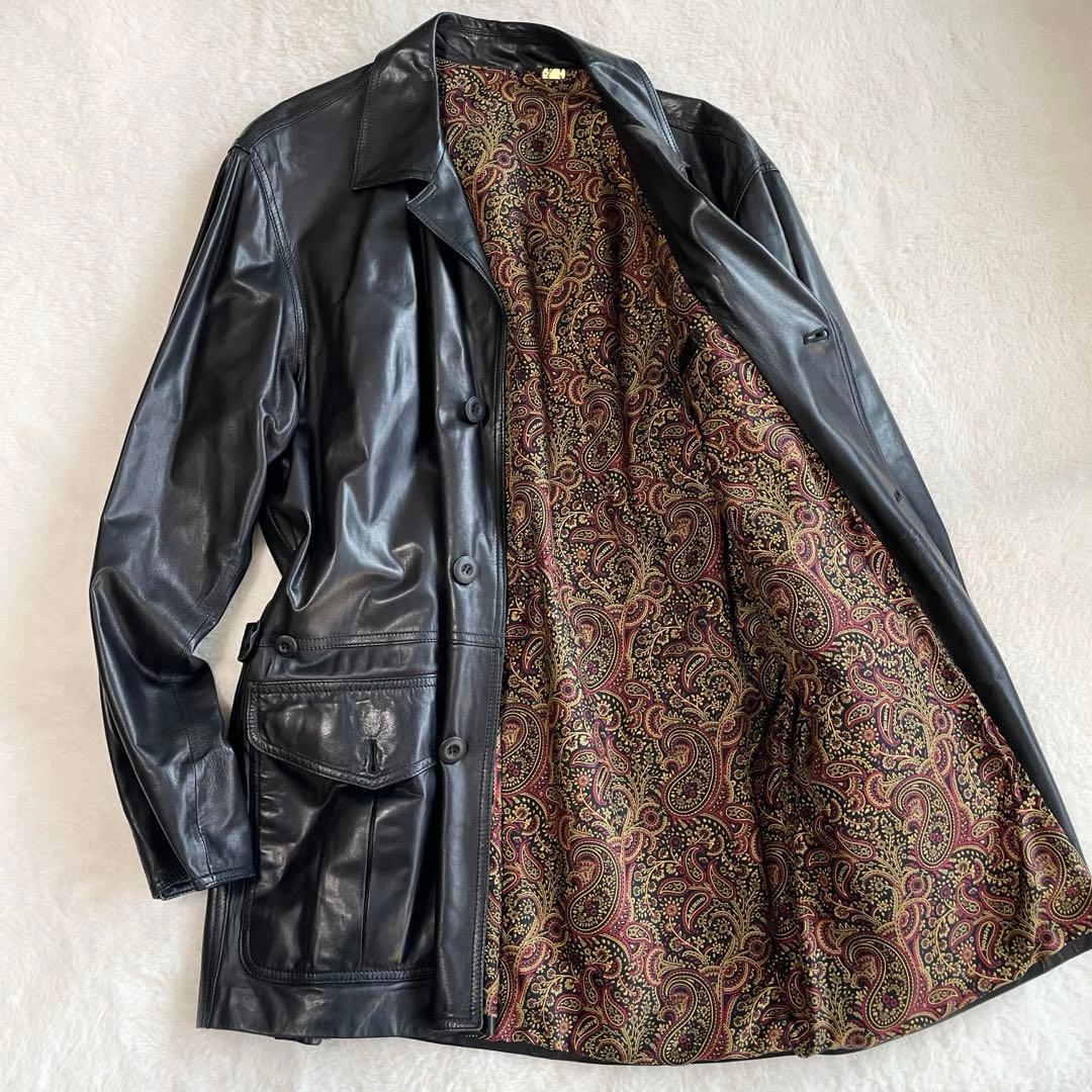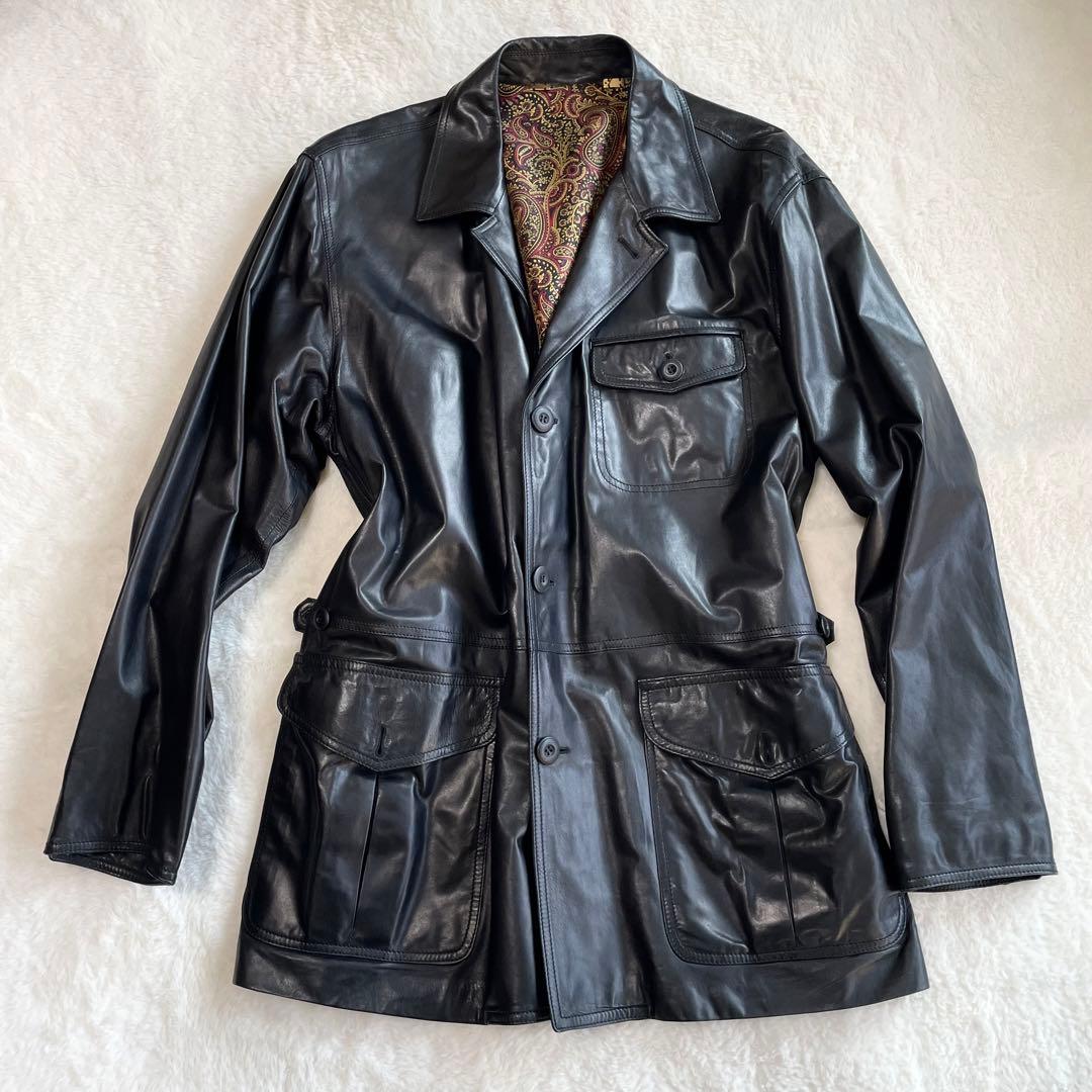 ✨️ド派手裏地✨️ア・テストーニ レザー テーラードジャケット 黒 XL