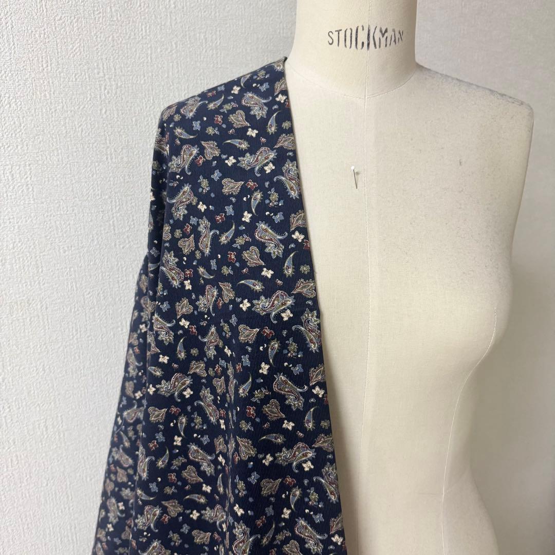 2M国産コットンシャツコールペイズリーコーデュロイネイビー濃紺生地布地