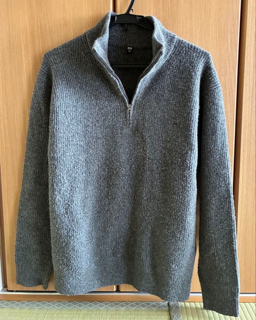 【ユニクロ】ハーフジップ セーター グレー L ニットセーター ウール混