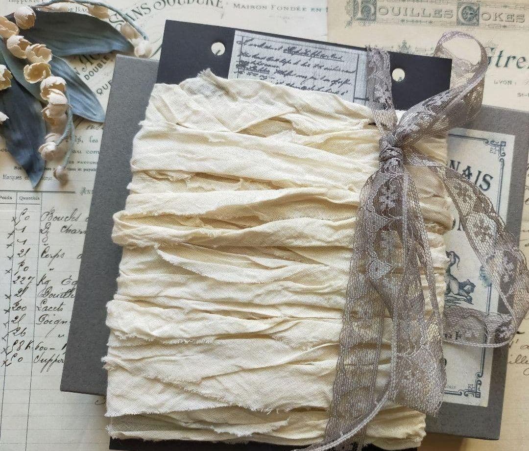 M477-2紅茶染め細番手裂き布12m*幅35mmエクリュ色継ぎ目ある