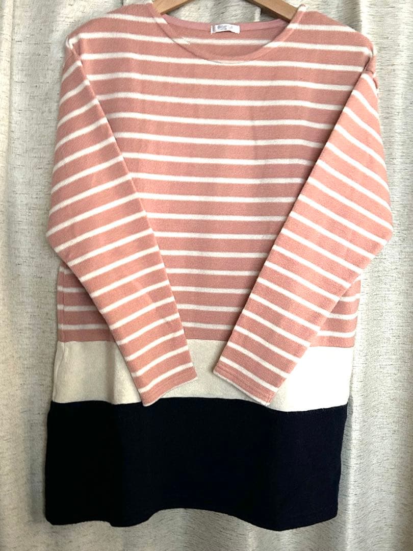 ハニポカ❣️大人可愛いニットチュニックワンピース・ボーダー柄Ⓜ️ハニーズ