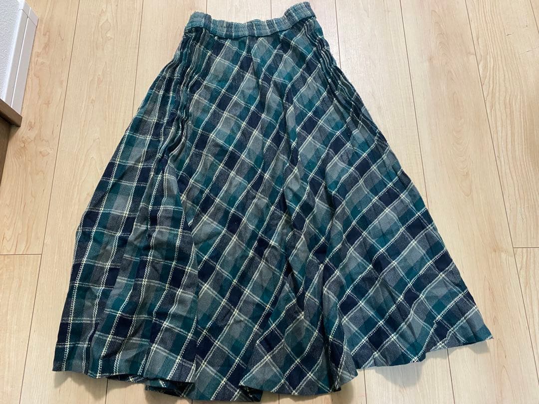チェック柄 グリーン プリーツ フレア ロングスカート 秋冬 フリーサイズ