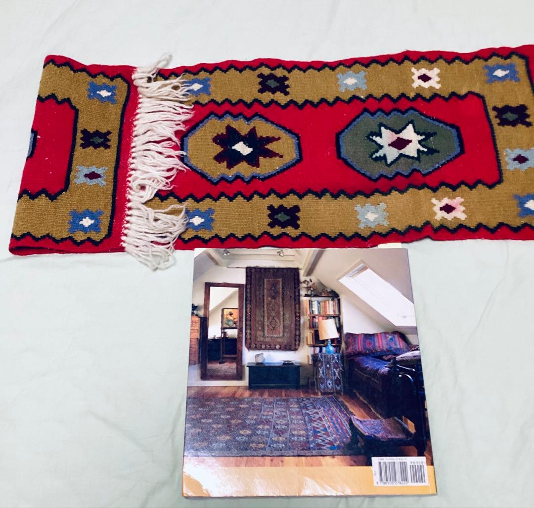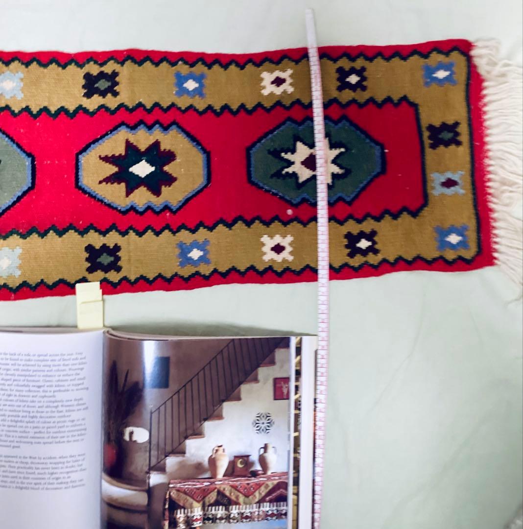 キリム トライバルラグ 真正な手紡ぎ手織りのウール製幾何学模様 約90x29cm