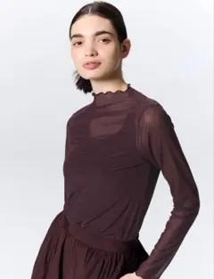 シアー カットソー タートル インナー アイボリー シースルー 韓国 秋冬 万能