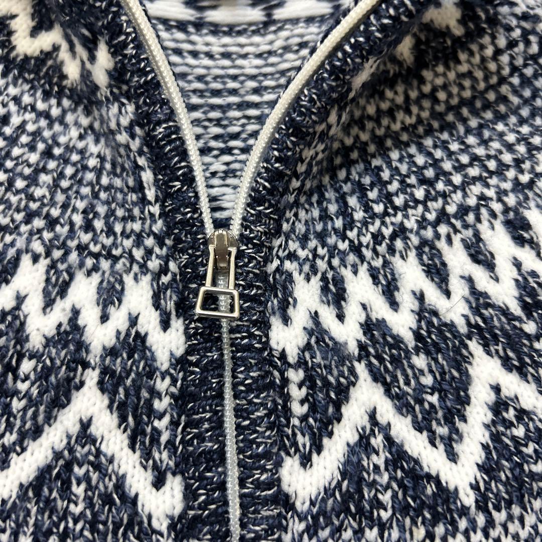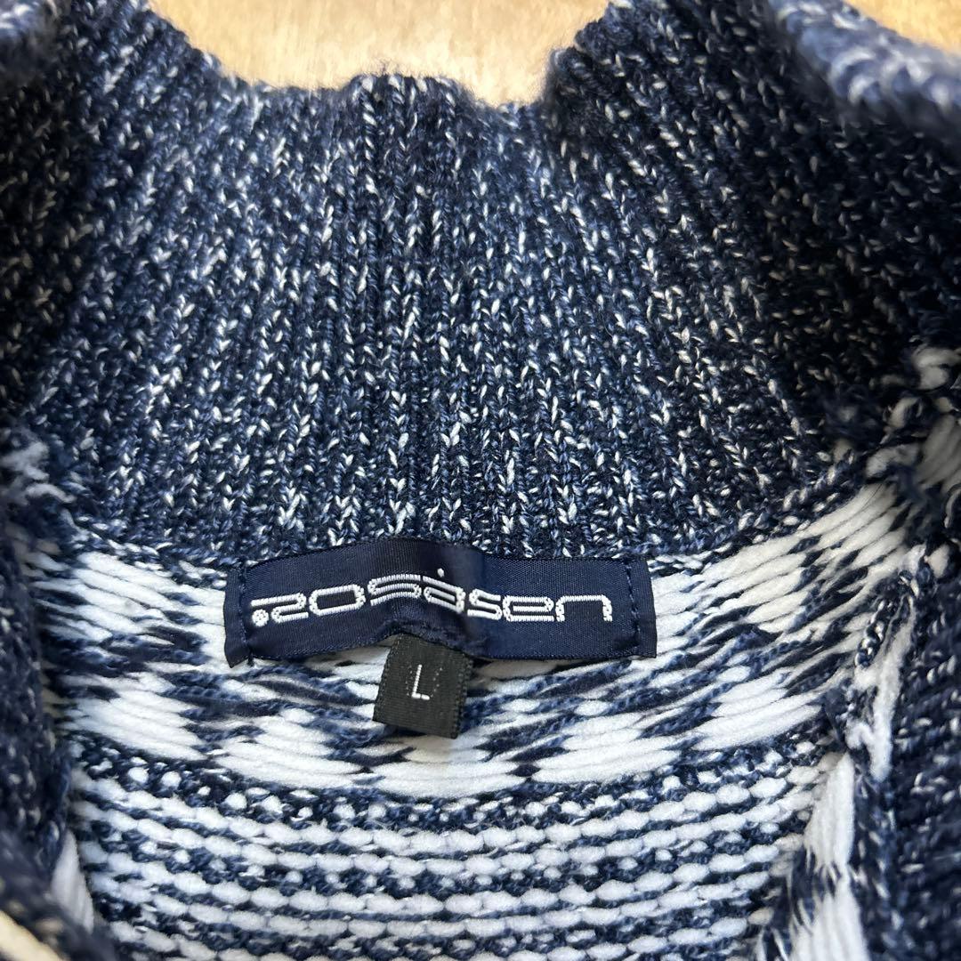 ロサーセン★ノルディック柄ジップアップ★セーター L★美品★格安★ネイビー