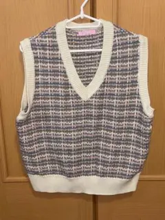 アイボリー ストライプ柄 ニットベスト Mサイズ iiMK サイズ38
