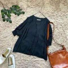 フレディレピ デニムカラー 青 スキッパーシャツ 光沢 M ゆったり 長袖