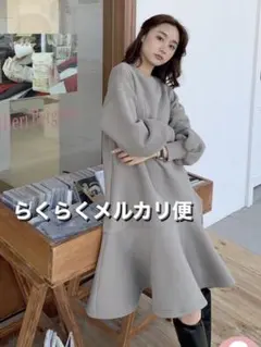 blistorm スウェットワンピース 膝丈 ワンポイント刺繍 長袖クルーネック