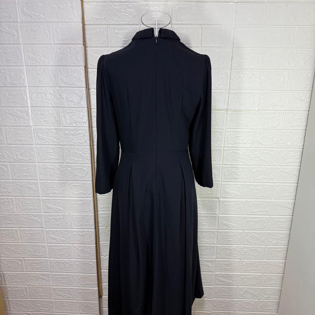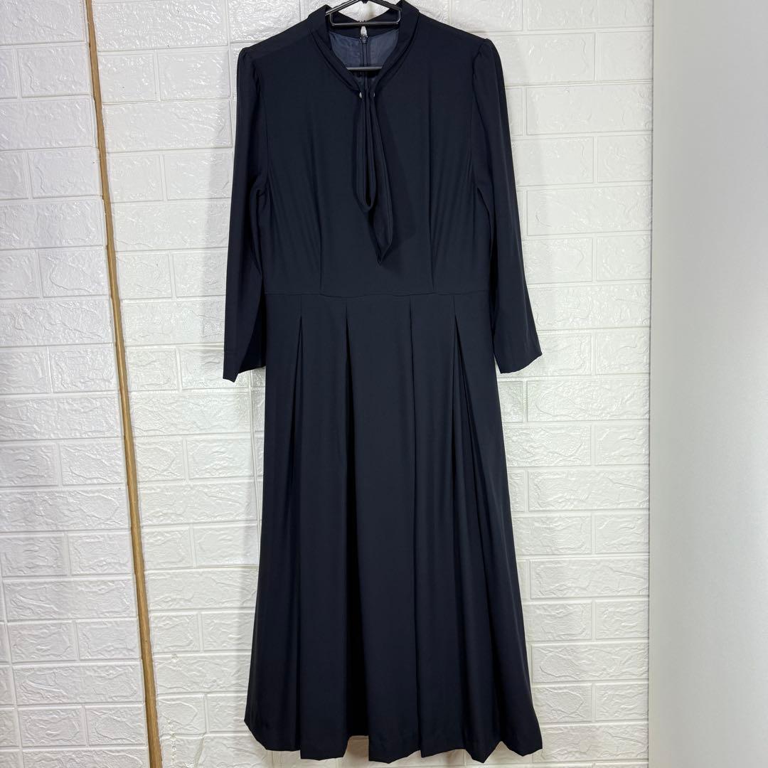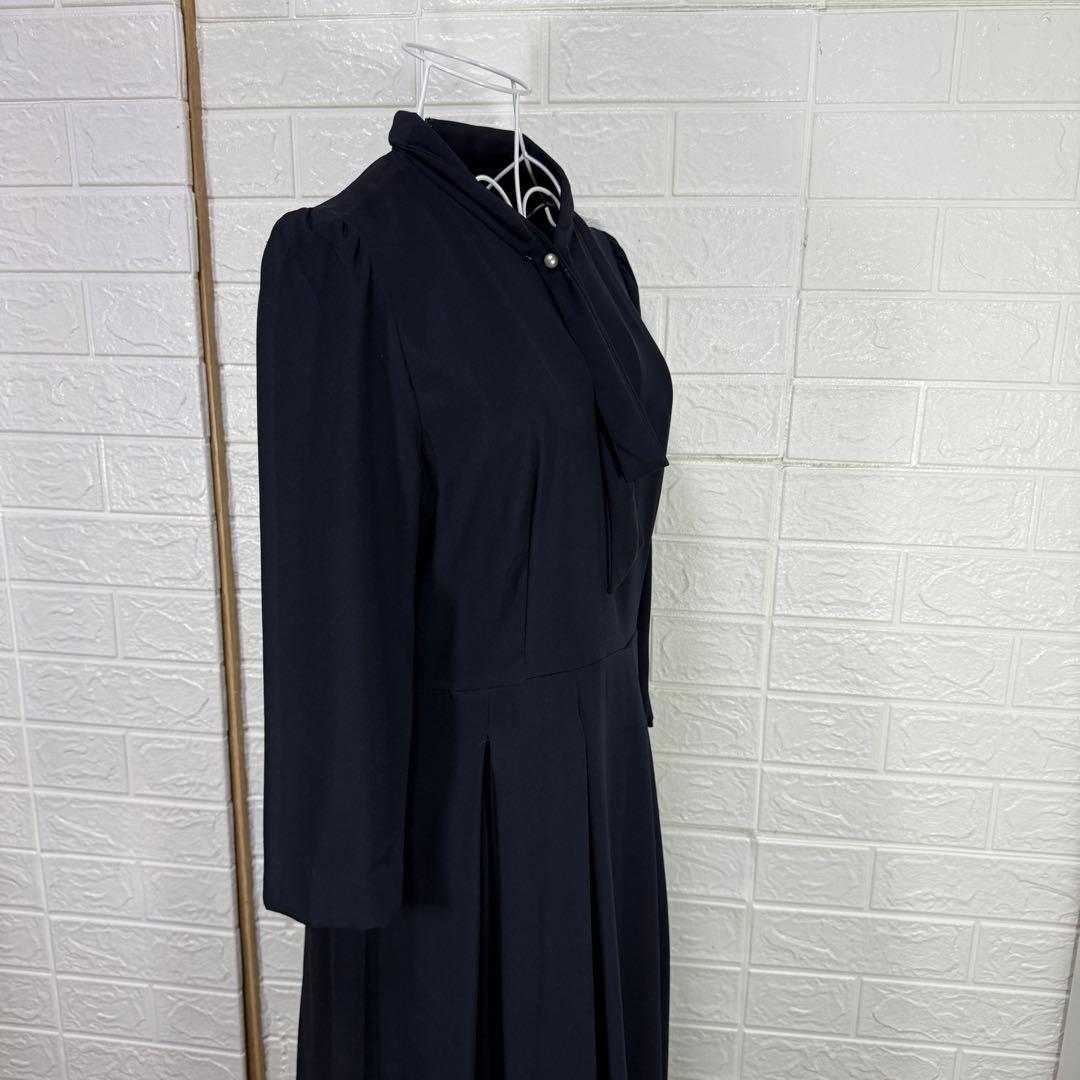美品 黒 ボウタイ リボン付き Aラインワンピース Lホワイトジョーラ