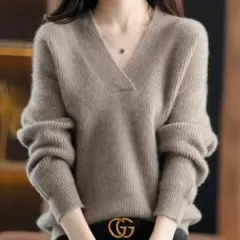 レディース ニット トップス Vネック セーター ベージュ F 長袖 秋冬