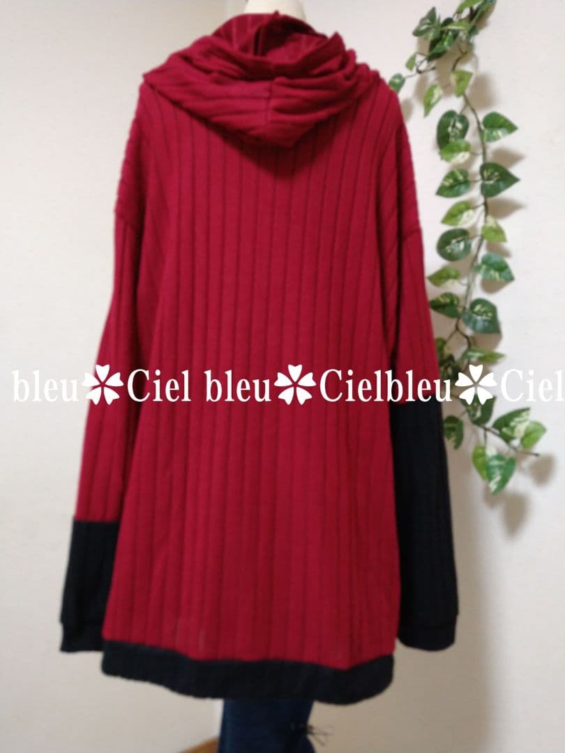 4L★大人上品*柔らかニットソー配色パーカー大きいサイズ※