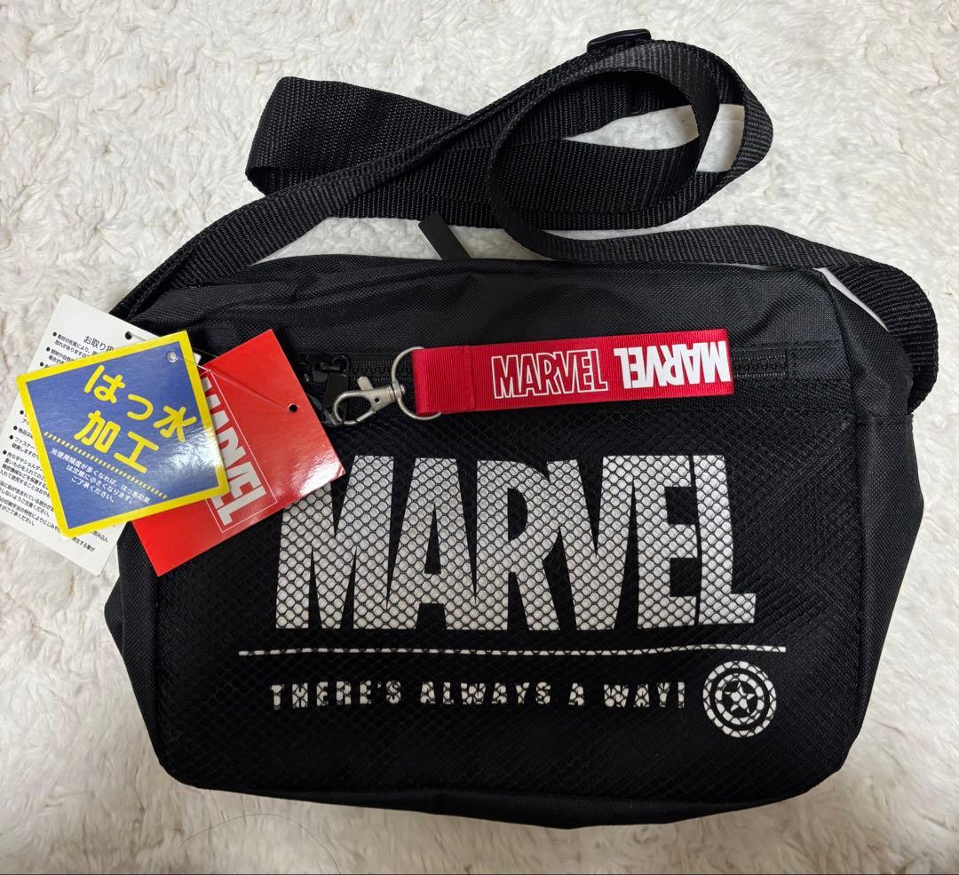 メッシュ素材のブラックショルダーバッグ、MARVELロゴ付きでスタイリッシュ。 - ブランド: MARVEL - 色: ブラック - デザイン: メッシュ素材とロゴ入り - スタイル: ショルダーバッグ - 特徴: 調整可能なストラップ -サイズ: 縦20cm 横28cm マチ6cm ご覧いただきありがとうございます。