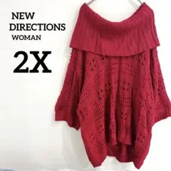 NEW DIRECTIONS WOMAN【2X】赤 ニットセーター オフショルダ