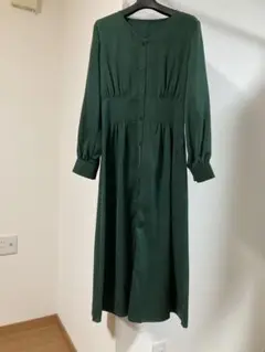 ダークグリーン 長袖 シャツワンピース フリーサイズ