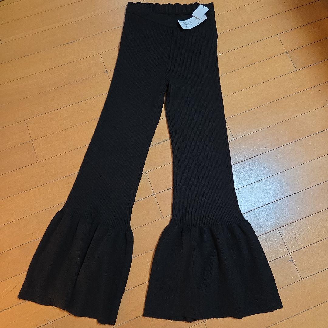 新品タグ付き RASVOA リブニットフレアパンツ 黒 L XL 訳あり