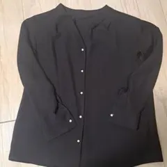 シンプルな黒のプルオーバーシャツ、長袖で後ろにタックがあり、袖口には留め具が付いています。 - 色: 黒 - デザイン: プルオーバー - 袖: 長袖 - 特徴: 後ろにタックあり - ディテール: 袖口に留め具あり 七部袖に出来ます。薄手タイプ ご覧いただきありがとうございます。