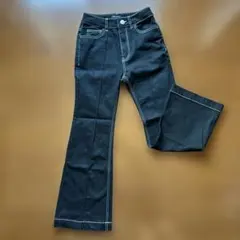 黒パンツ ホワイトステッチ・ストレッチ入り