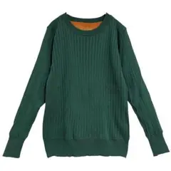 タグ無し新品/裏起毛長袖リブカットソー/裏ボア/ポカポカ/グリーン