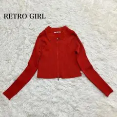 レトロガール ジップニットトップス 派手色 リブニット カジュアル 無地 洗える