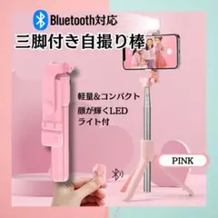 セルカ棒 リモコン ライト付き 自撮り 三脚 Bluetooth 遠隔 ピンク