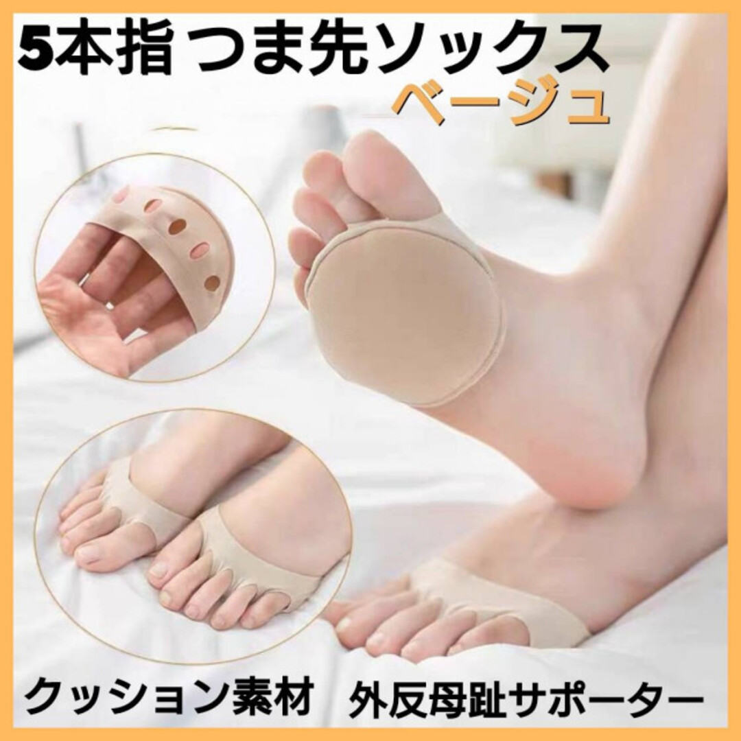 つま先ソックス ベージュ 5本指インナーソックス 外反母趾サポーター クッション