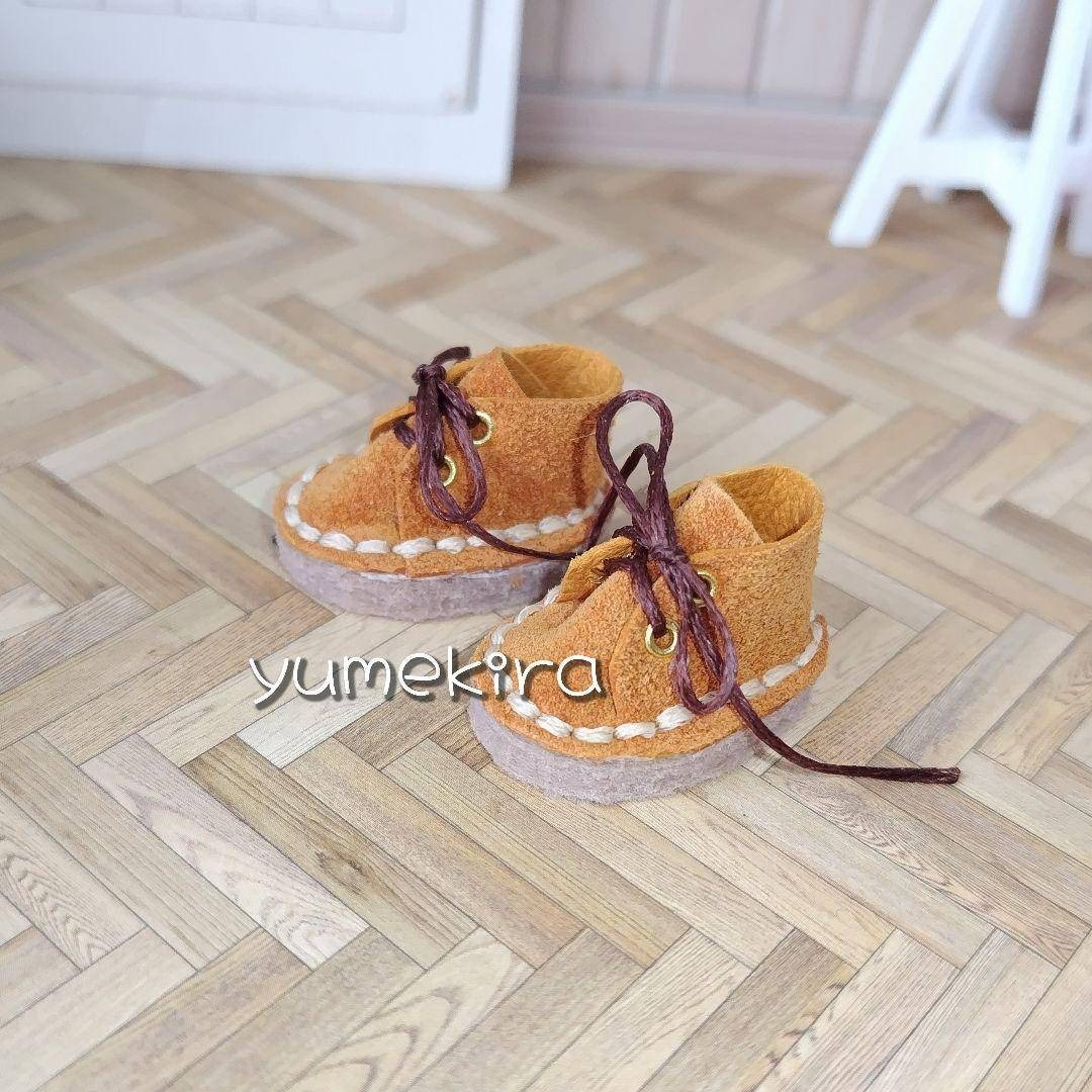 他にもたくさん制作してます(*^^*) #yumekiraのショップ靴着せ替え一覧 ※他のお店にも出品しておりますので、  突然出品を削除する場合がございます。 ★ドール用 シューズ バッグ 服は、  お客様からとても高評価をいただいており、  とても嬉しく励みになります。 ーーーーーーーーー ◆おまとめ割引き◆  2点目から1点毎に100円引き致します。  ・対象商品 ドール用商品 ⚠ドールグッズとK18アクセサリーは別発送になりますので、別々にご購入お願い致します。 ーーーーーーーーーー No.1131 イーマリーちゃん、リカちゃん、オビツ、 アイシードール、ミディアイシードール、 ネオブライス、ミディブライス、 10cmセリアボディ スエードシューズです。 紐は固定していないので結び直しが可能です。 長めにしてありますので、ご自身で調整してください。 ◆サイズ 黄茶 内底 約2.7cm 縦 約2cm 靴底 約3cm ソール高 約5mm 合皮 厚底をご希望は、+50円で制作致します。 同じカラーが複数欲しい、違うカラーが欲しい、等ご要望承ります。 ※靴のみの販売です。 ※ハンドメイド品になります。 完璧を求めている方はご遠慮ください。 ※転売しないで下さい。 ※画像を何度か使用するため全く同じではありませんのでご了承ください。 ※お客様都合のご返品、ご返金はできかねますことをご了承下さい。 ご了承いただけるかたのみご購入をお願いします。 ◆匿名配送ご希望は、  プラス50円いただきますので、  コメント欄にてお知らせ下さい。 _______ #ハッピードール #イーマリーちゃん #アイシードール #イルメール #着せ替え #ドール #ミディブライス #スエード #ネオブライス #オビツ #Licca #厚底 #リカちゃん #人形 #ブーツ