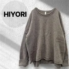 HIYORI 茶 オーバーサイズセーター スリット クルー 袖ロールアップ
