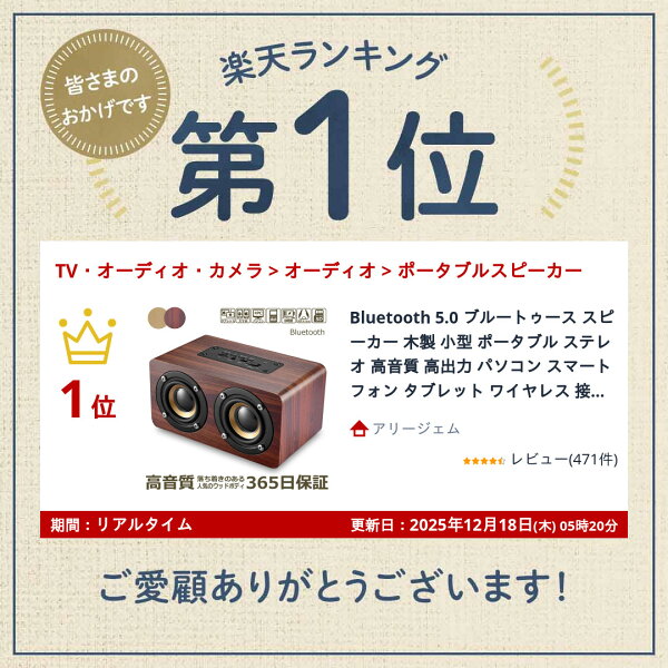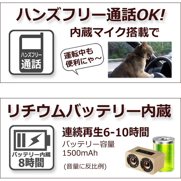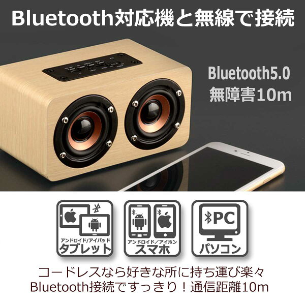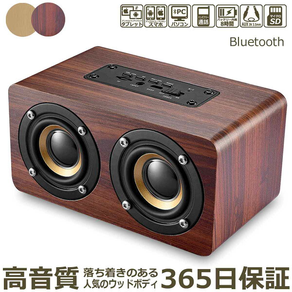 Bluetooth 5.0 ブルートゥース スピーカー 木製 小型 ポータブル ステレオ 高音質 高出力 パソコン スマートフォン タブレット ワイヤレス 接続 マイクロ sd カード 再生 スピーカー 有線 端子 ハンズフリー 通話 おしゃれ バージョン ランキング受賞