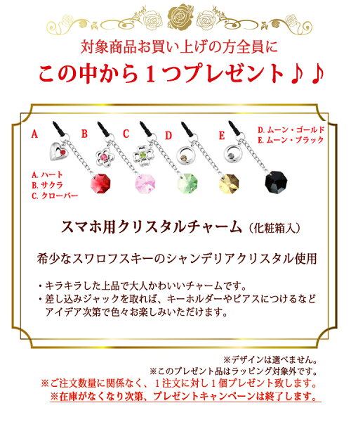 スマホ用のクリスタル チャーム(アクセサリー)を、1回の御注文総数に対して1個お届けしております。