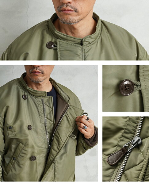 スタンドカラーは一枚で着るのはもちろん、フードとのレイヤードも楽しめる一味違ったフライトジャケットです。