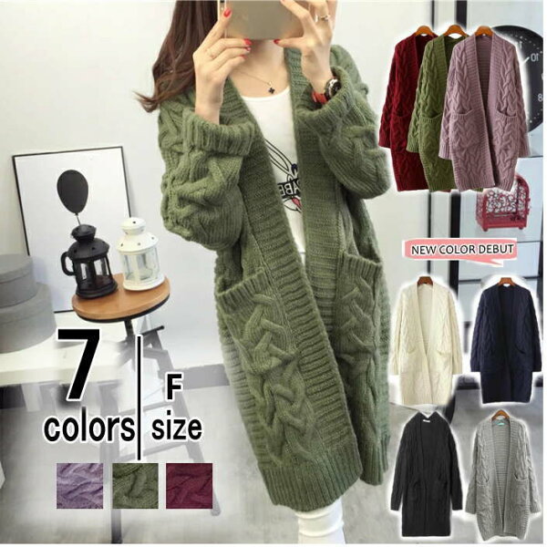 クーポンで10%OFF!ニットカーディガン レディース ニットコート カーデ ロング丈 ゆったり体型カバー ボリューム ドロップショルダー 厚手 ゆったり 体型カバー 長袖 コーディガン ケーブル編み 春 秋冬 ローゲージ 送料無料(アパレル)